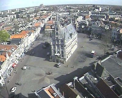 De Grote Markt in Gouda, nu nog ongezellig leeg...